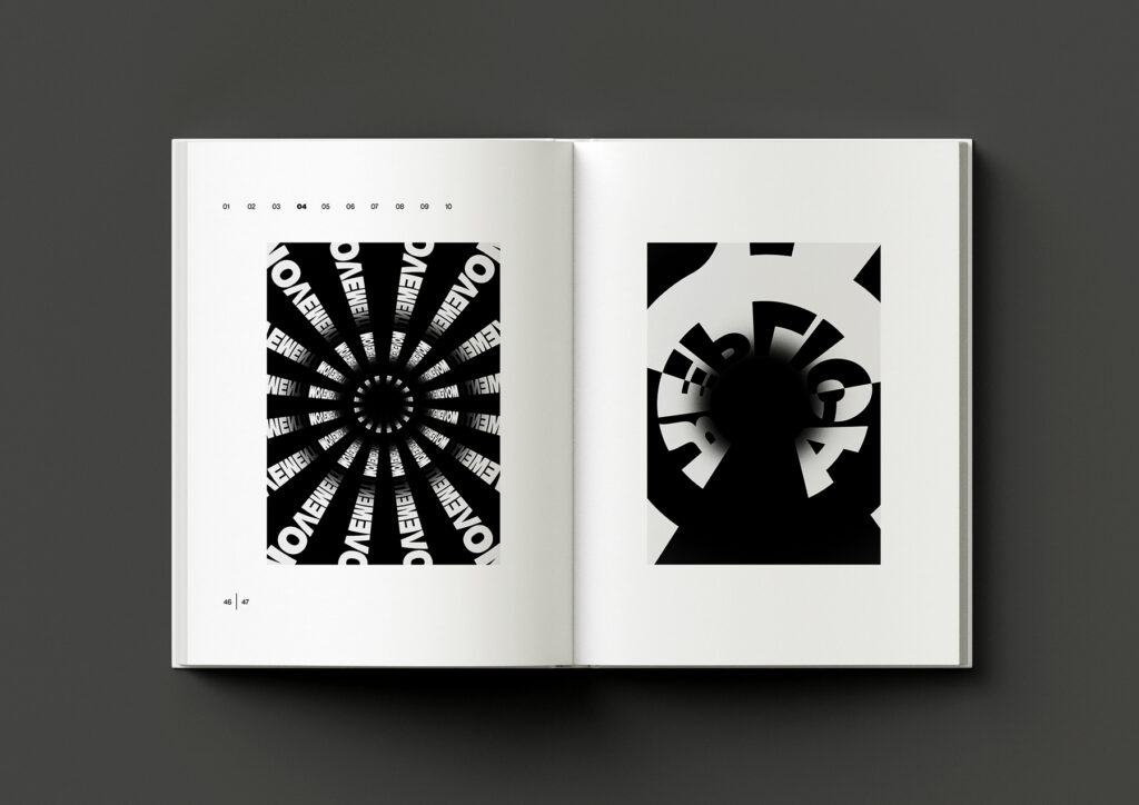Analog Kinetic Typography explores kinetic typography and its creative possibilities in analog media. The central theme revolves around the juxtaposition of fixed and fluid typography. Kinetic typography is mostly associated with digital creation and usually exists in digital spaces. This work explores it beyond the digital realm, extending it to print. The analog media does not offer explicitly defined content, rather it encourages readers to explore and interpret their own understandings and vision of the works within the pages.