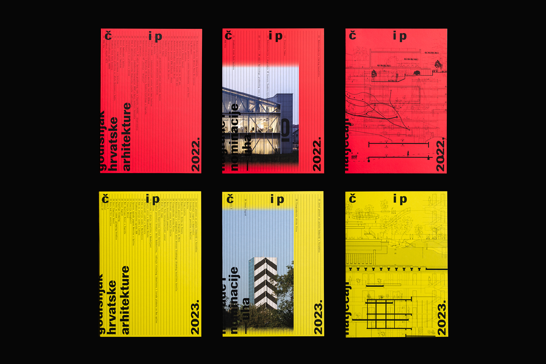 Čovjek i prostor is a publication issued by the Association of Croatian Architects since 1954. Following its redesign in 2017, it is characterized by the variability of visual expression, with constant design elements – B5 format and the logo concept (ČIP / Čovjek i prostor). Since the addition of two more publications alongside the ČIP Yearbook – ČIP Awards and Nominations, and ČIP Competitions – the basic design elements (text layout, typography, binding and paper type) stay fixed, while only the cover details change with each annual edition. The publications are characterized by a variety of different types of textual content in just as many variations of the basic graphic layout.