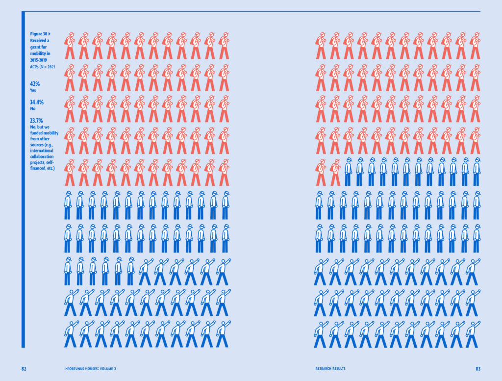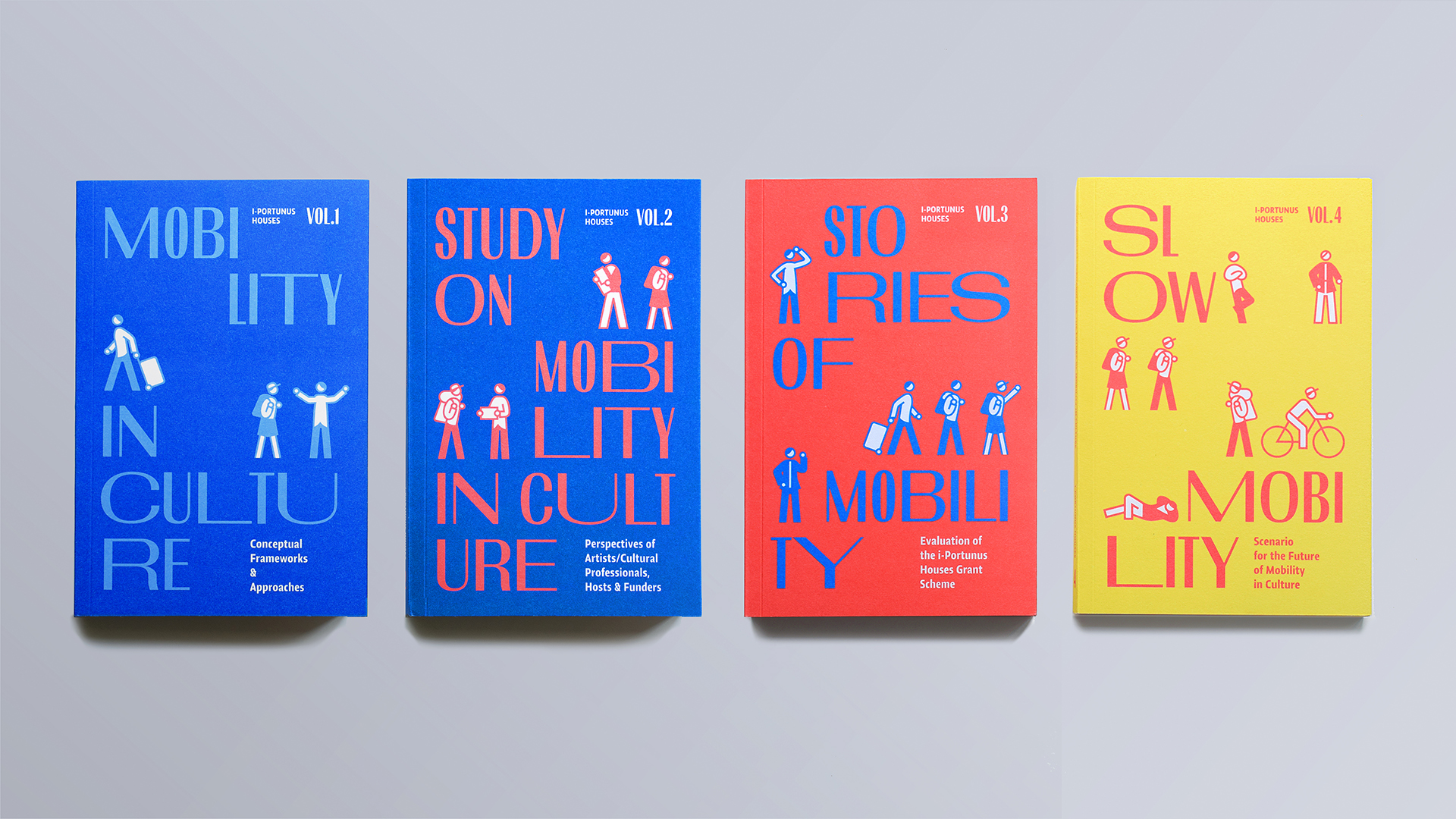 The four volumes of this publication explore cultural mobility from different perspectives. The first volume provides a conceptual framework and elaborates on approaches to cultural mobility. The second volume presents research, while the third offers an evaluation report on the implemented scheme. The fourth volume presents scenarios for the future of mobility in culture. Editorially, the publication follows a progressive path toward the future, from theoretical review and analysis, through research, to the application of learned insights and anticipation of future scenarios. The concept is based on a graphical interpretation of the idea of gradation, achieved through the gradual expansion of the color palette, typography and diagrams, as well as the relationships between its elements.