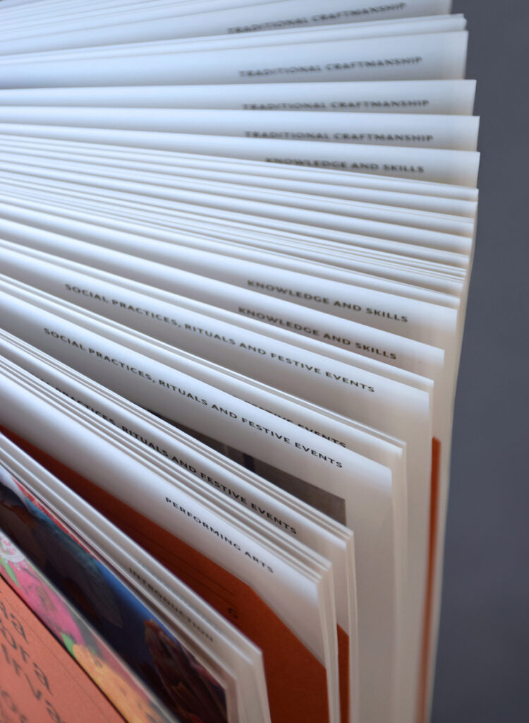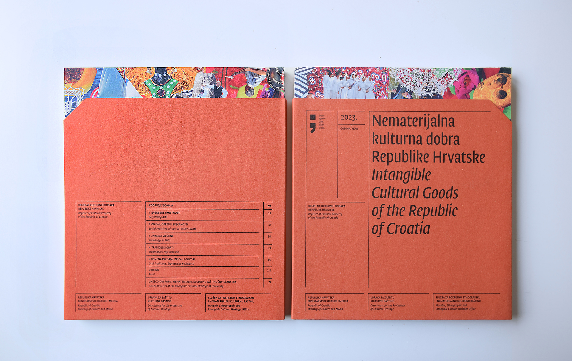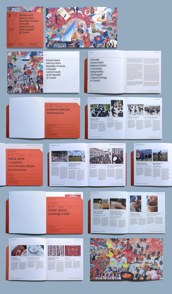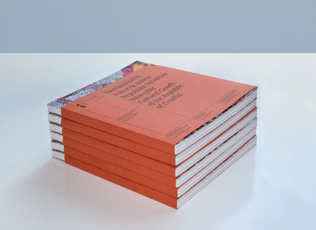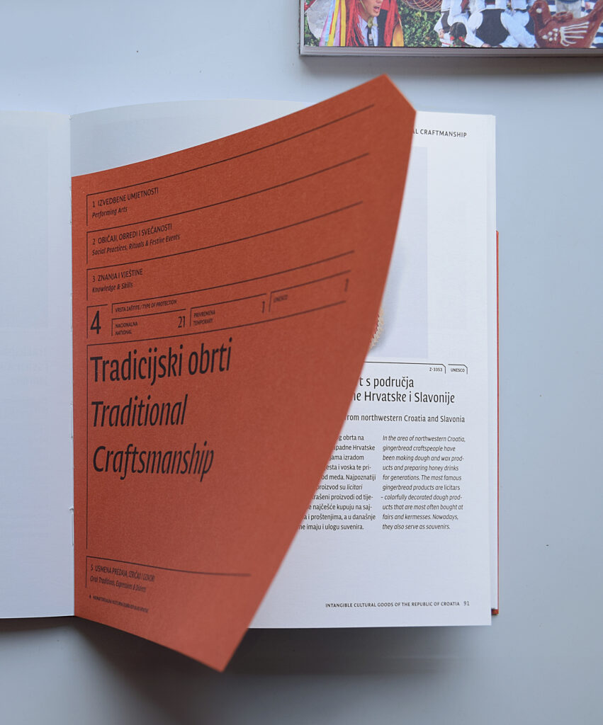 The Register of Cultural Goods of the Republic of Croatia contains information on immovable and intangible cultural goods, as well as data on public archival materials and library collections, in accordance with the Regulations on the Form, Content, and Manner of Maintaining the Register of Cultural Goods of the Republic of Croatia. The design of the publication is inspired by the aesthetics of registries and archival cards, while certain design elements consciously break out of these confines.
