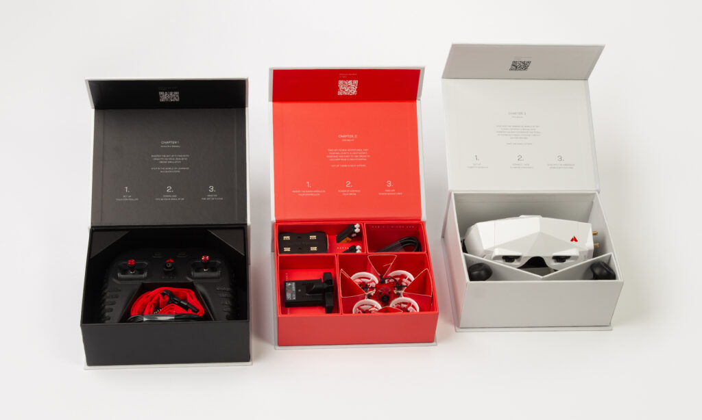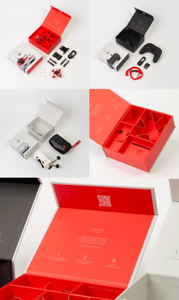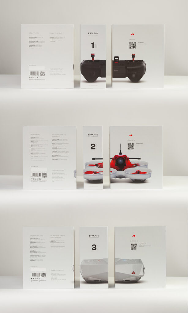 The ORQA educational drone kit is crafted to provide an engaging learning experience for school children, introducing them to drone technology with organized sets including the controller set, goggles set, drone and accessories set. Each component is meticulously designed to fit within its own dedicated space within the boxes, which could be stored neatly on shelves like books. Side covers indicating the contents inside. Designed with school children in mind, the kit’s easy-to-use and organized. Durable components make it ideal for educational programs, enhancing the learning experience by providing all necessary tools in one comprehensive, reusable package.