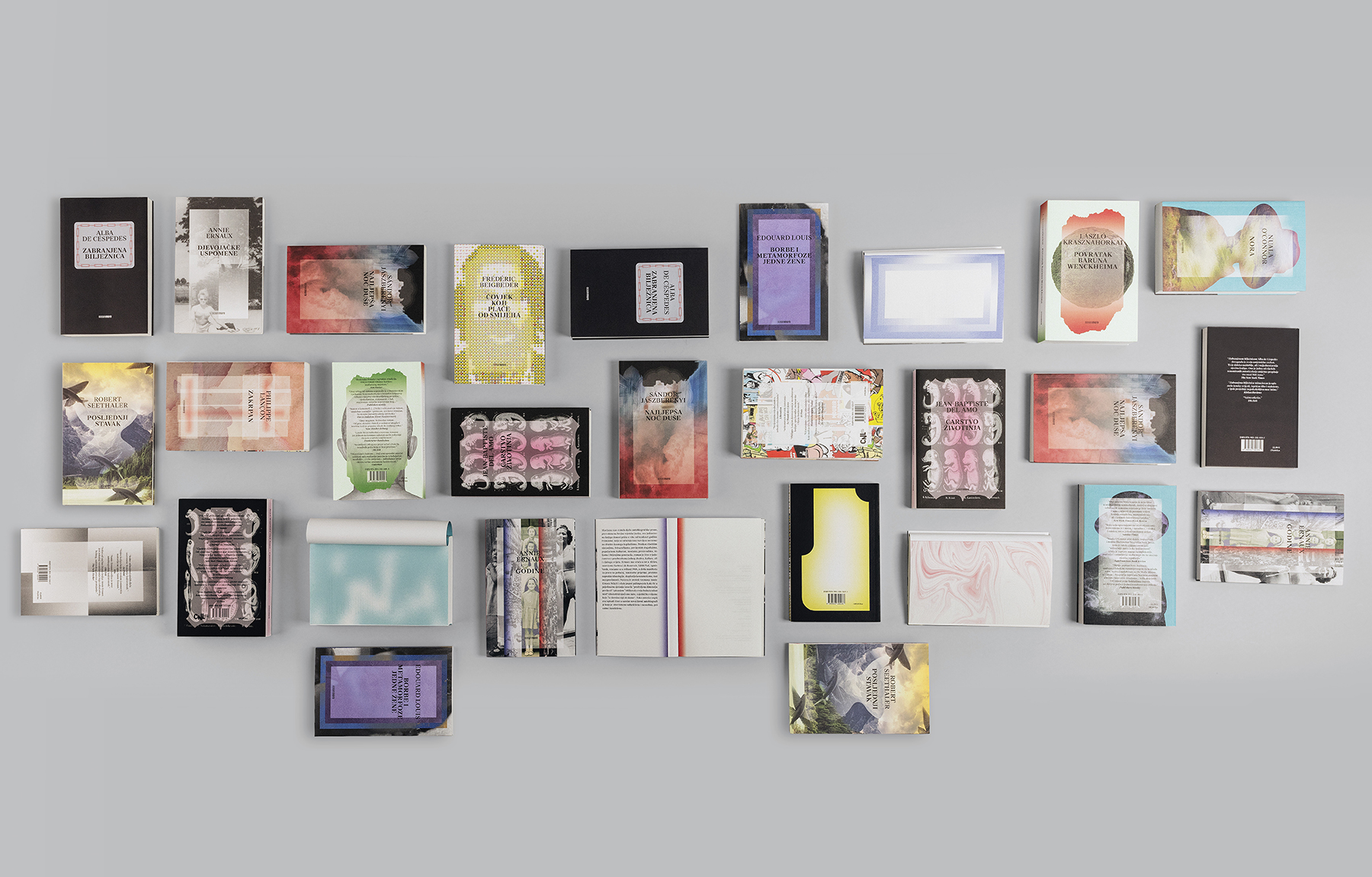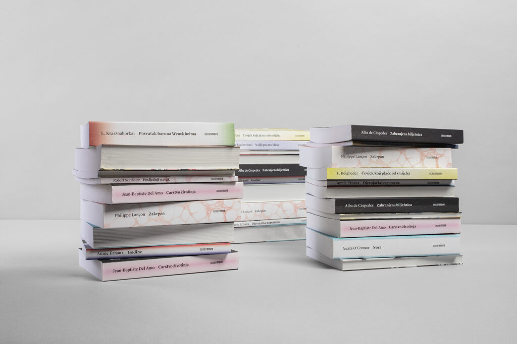 Design of the book series of world literature contemporary authors, with a tendency of becoming contemporary classics. The visual code of the series consists of two elements on the cover: image (photo/photo collage/illustration…) and the frame with an information layer. These two elements are variable — the image and the frame change with each new edition, however the books form an eclectic but compact publishing unit.