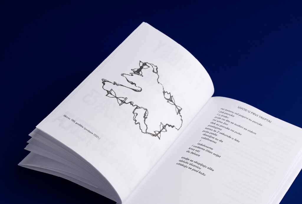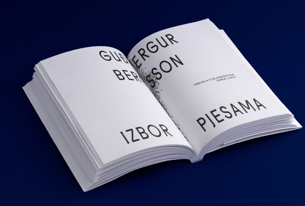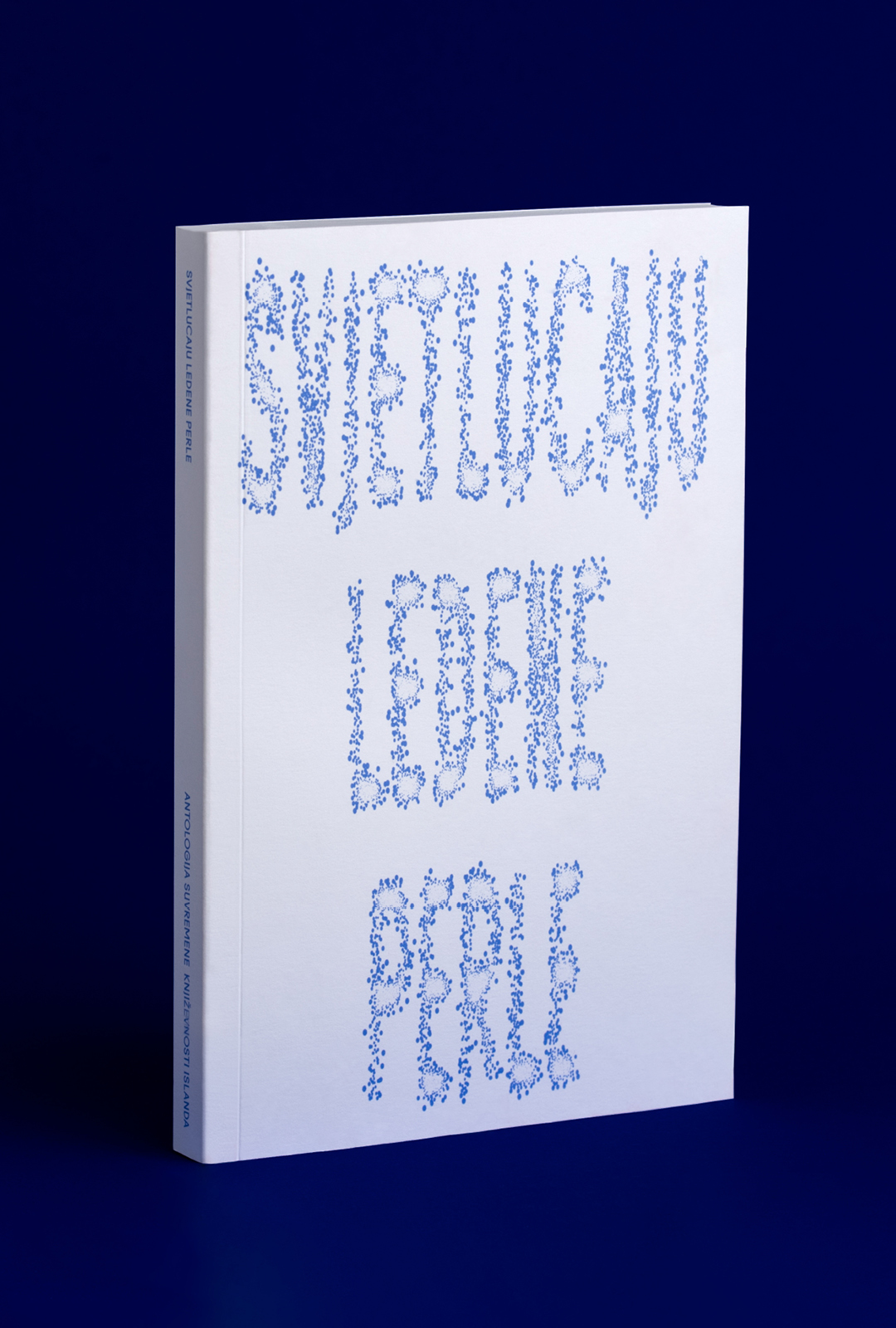 The anthology Svjetlucaju ledene perle („The Ice Pearls Are Flickering“) provides insight into contemporary Icelandic literature through translations of 12 authors from different generations and with diverse styles. The completely white cover contrasts with the typographic interpretation of the vivid title in blue. The glittering flashes, as one of the authors calls them, appear throughout the book and introduce each new author.