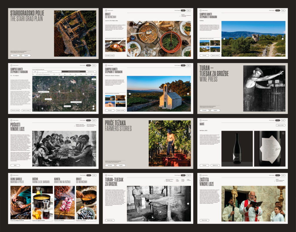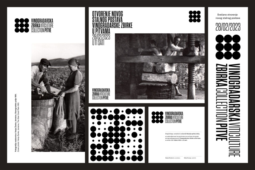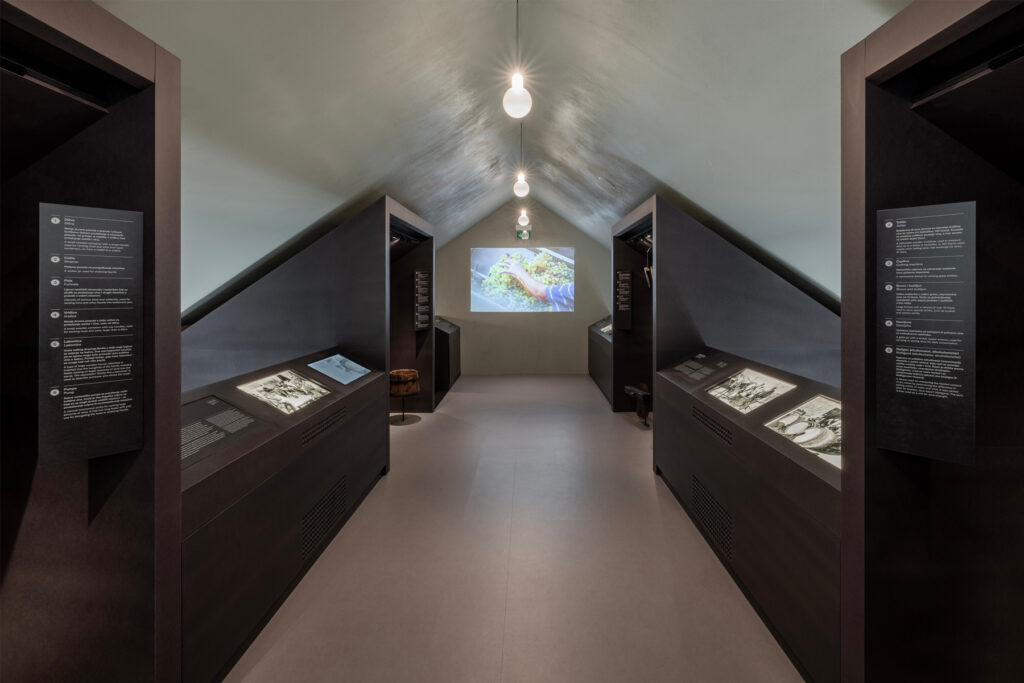 The Viticulture Collection is housed in a former school in Pitve, on the island of Hvar. Contemporary interior elements are integrated into the space without altering the original form of the building. The designed elements create display niches, while the space between them flows freely, offering views of the surrounding landscape. The collection showcases various themes from Hvar’s centuries-old viticulture tradition. The modular sign can be transformed into various forms as needed, creating a unique language of icons that can present numerous topics. The design employs subtle graphic elements, refined tones, and a minimalist illustration style, aligning with the interior concept.