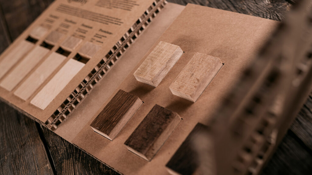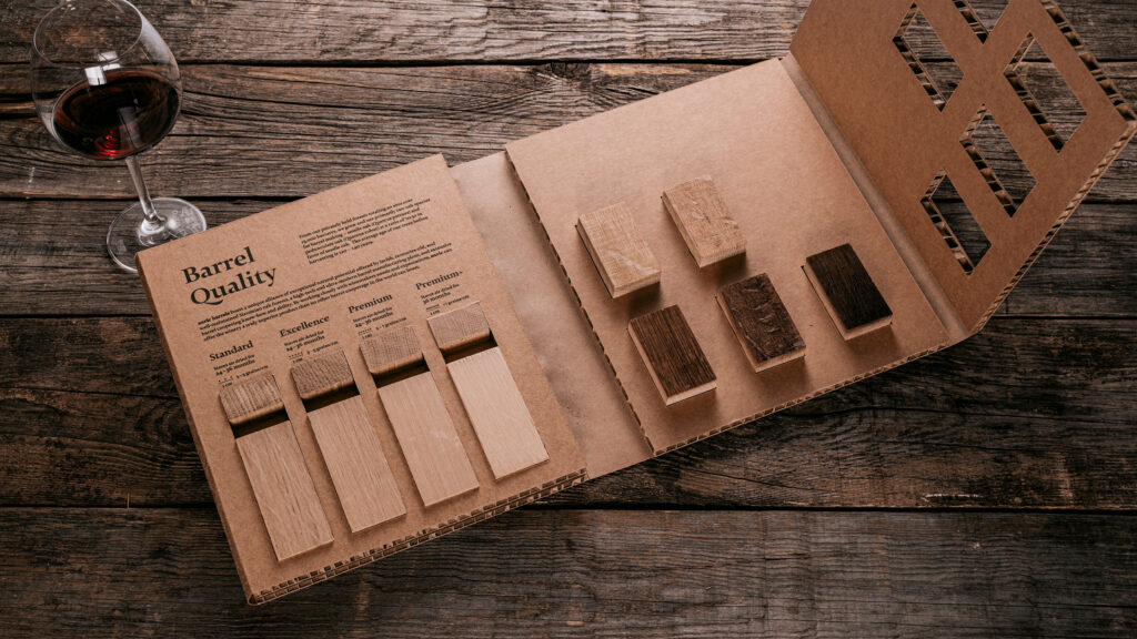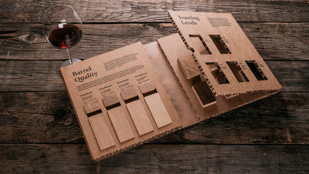 Auric je proizvođač vrhunskih vinskih bačvi od slavonskoga hrasta. Na svjetskom tržištu susreću se s problemom percepcije kvalitete svog drveta i proizvoda. Slavonski hrast kitnjak svojom kvalitetom pandan je onom francuskom. Bačva je proizvod koji se radi po narudžbi i teško ju je pokazati prije kupnje. Zbog toga je dizajnirana prodajna brošura inspirirana uzorcima materijala, zidnih i podnih obloga. Prodajna brošura ima zadatak neodlučnim kupcima pokazati kvalitetu drveta, gustoću, odnosno finoću goda, pravilan način cijepanja drveta, te spektar aromatike prema različitim stupnjevima tostiranja bačve.