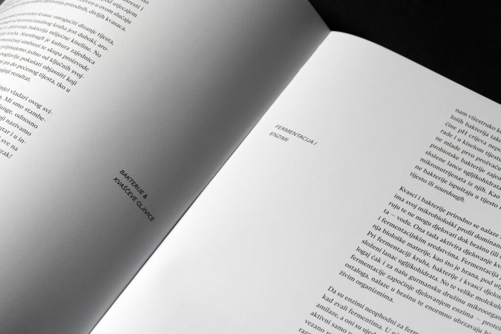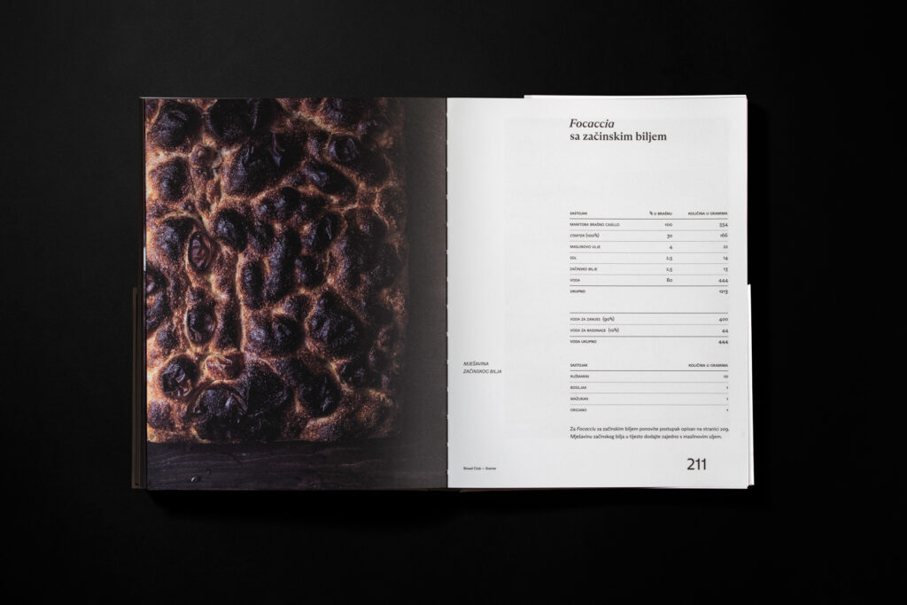 Knjiga Starter verbalan je i vizualan prikaz stvaranja kruha od kiselog tijesta — startera — te osvrt na pokretanje i stvaranje pekarnica Bread Club. Sourdough kruh poznat je po tvrdoj, hrskavoj korici i mekoj unutrašnjosti, s uvijek jedinstvenim i neočekivanim presjecima i teksturom. Korice knjige iz dva dijela vežu se uz koncept startera, u kojem tvrdi dio predstavlja koru kruha, dok meki uvez simbolizira njegovu meku unutrašnjost i složen sustav razvijanja tijesta koji se očituje u presjeku. Upravo se presjek stvarnog kruha ručno otiskivao na papire, kako bi se dobile naslovnice poglavlja, a povećanje točaka znamenki numeracije knjige simbolizira bujanje tijesta i sourdough kulture.