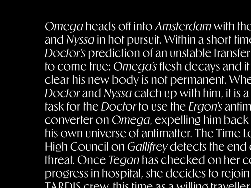 Ergon je tipografsko pismo koje vješto kombinira različite utjecaje: slova uklesana u kamenu interpretirana su kroz preciznost digitalnih alata kako bi se dobile upečatljive grafičke forme. Ovaj koncept je proveden kroz veliki raspon debljina i doveden do samih ekstrema. Slike riječi u tamnijim stilovima same po sebi izgledaju kao logotipovi, dok su tanji stilovi nježniji i podsjećaju na vremenom istrošene kamene spomenike. Vizualna specifičnost ovakvog pisma idealna je za upečatljiva tipografska rješenja, bilo digitalno ili u tisku.