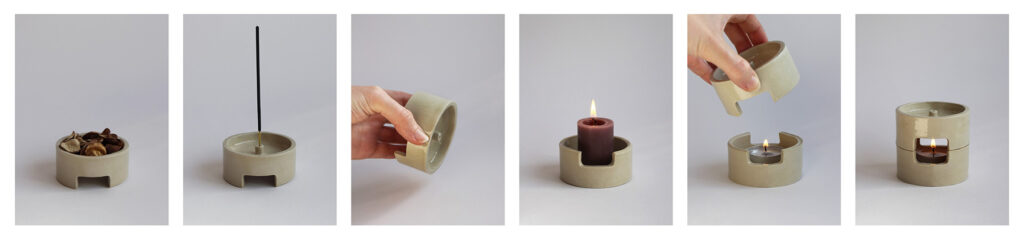 Firefly je multifunkcionalni proizvod za difuziju mirisa u kućanstvu. Zamišljen je kao set dvaju identičnih dijelova koji se mogu koristiti zajedno ili odvojeno. Jedan dio samostalno služi kao posuda za suhe biljke, držač za mirisne štapiće, svijećnjak itd., a u kombinaciji s drugim dijelom funkcionira kao difuzer za eterična ulja. Budući da je praktičan, kompaktan i jednostavan predmet, promiče korištenje prirodnih esencija u domovima korisnika. S obzirom da se radi o tvarima koje prirodno odbijaju određene insekte, a pritom im ne nanose štetu, predstavljaju održivu alternativu pesticidima koji su štetni za ljude, insekte i okoliš.