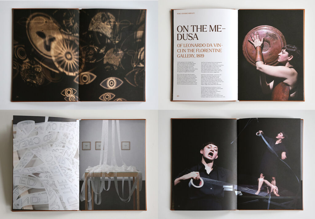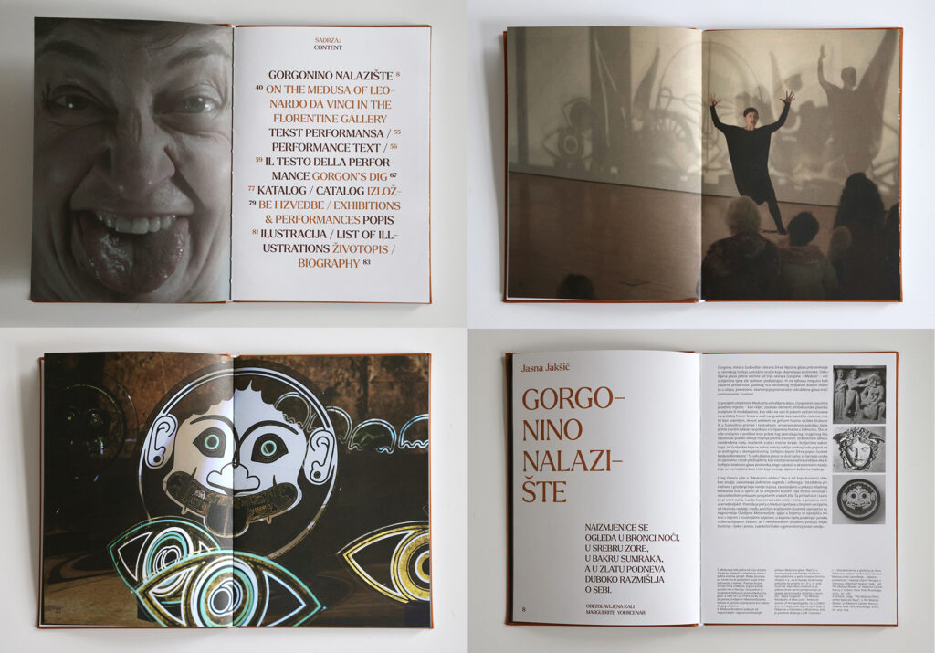 Katalog vizualne umjetnica Lale Raščić za seriju radova GORGO (2019. – 2021.) u kojima oživljava lik Meduze i progovara o drevnim i suvremenim mitovima kao temeljima suvremene kulture. Dizajn je inspiriran antičkom mitologijom, vizualno i tipografski prati ambijente umjetničkih performansa. Upotreba bakrenog tona na koricama i u knjižnom bloku referira se na materijal kostima/ratničkog oklopa koji umjetnica koristi pri izvođenju performansa. Korištenje „klasične“ tipografije u dominantnim omjerima „obezglavljuje“ se naglim i naglašenim lomovima riječi u naslovima koji funkcioniraju kao samostalni vizuali.