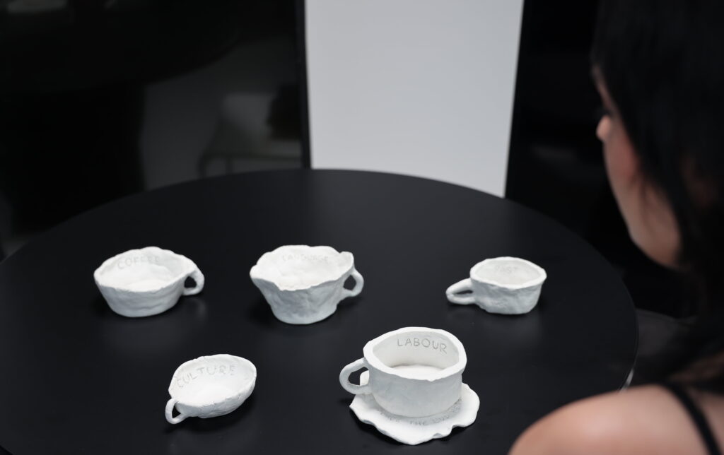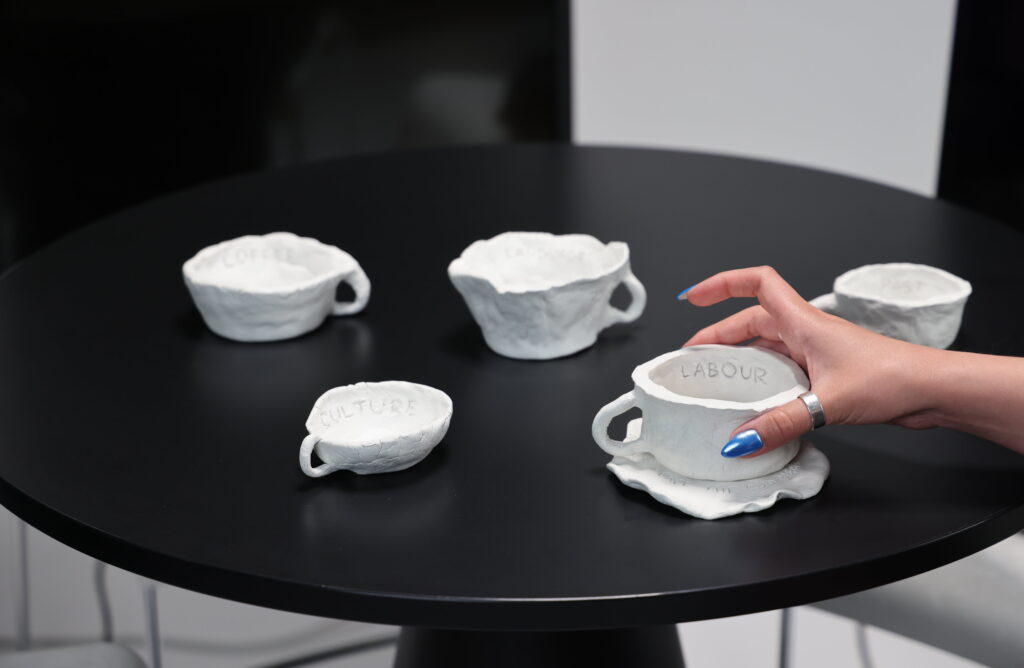 Instalacija pretvara uobičajeni ritual razgovora uz kavu u platformu za potreban, a često izostao dijalog o kulturnoj integraciji stranih radnika i njezinim izazovima unutar Hrvatske. Uz stol za kavu gdje ekrani zamjenjuju sugovornike, publika je pozvana sjesti i odabrati jednu od šalica koje su označene različitim temama. Odabirom šalice započinju razgovori na ekranu i sudionici vode dijaloge vezane uz odabranu temu. Razgovori se odvijaju pred publikom čineći ih tihim promatračima. Ovaj projekt poziva publiku da nastavi eksperiment promišljanjem ili započinjanjem razgovora o temama o kojima su sudionici raspravljali u video instalaciji.