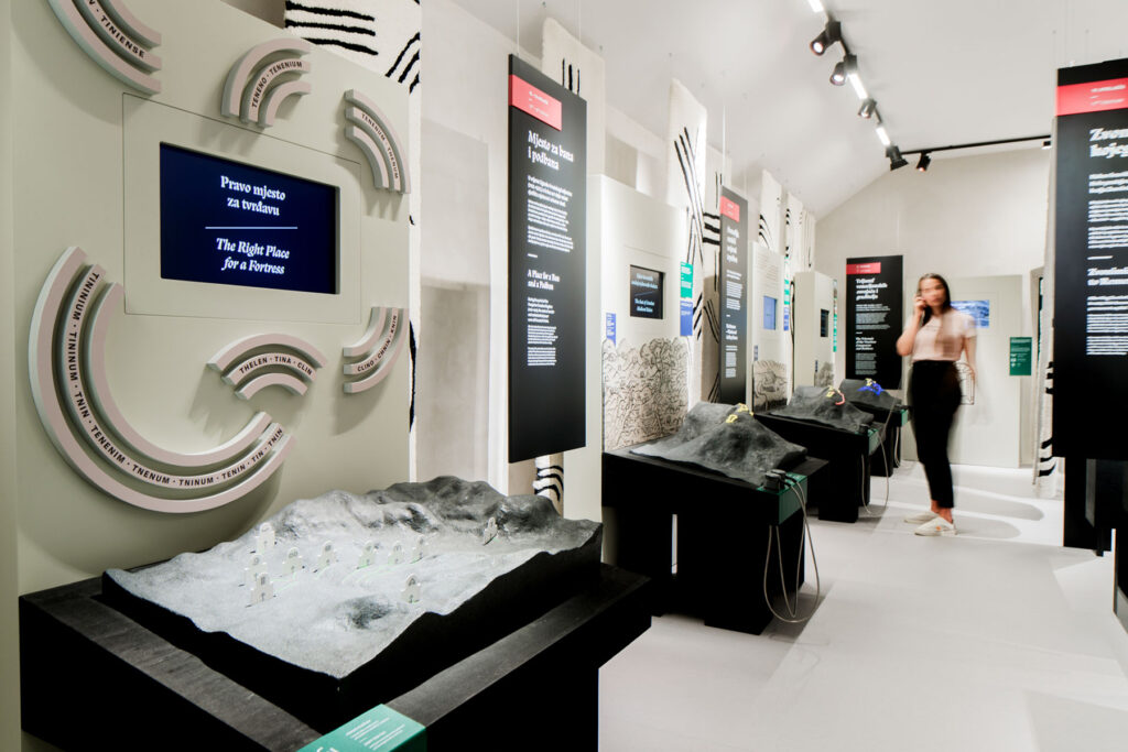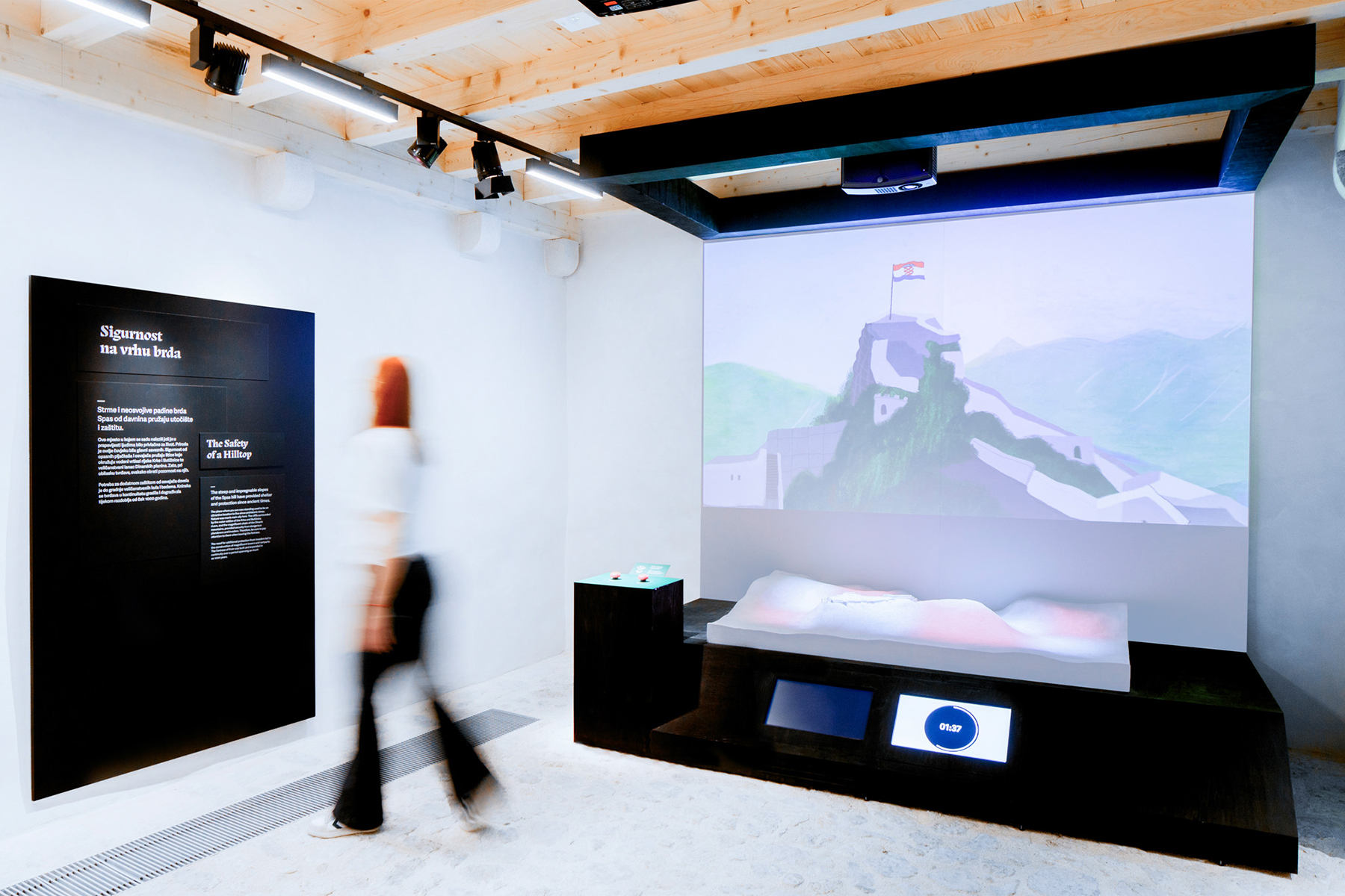 Kninska tvrđava, kao jedan od najvećih fortifikacijskih kompleksa u Europi posebno je važna za hrvatsku povijest. Izložba interpretira tisućljetni značaj tvrđave od prvih arheoloških istraživanja do danas. Razvoj tvrđave kroz stoljeća prikazan je u kontekstu geopolitičkih prilika kroz makete i multimedijalne izloške. Glavni protagonisti izložbe su Kralj Zvonimir i fra Lujo Marun – utemeljitelj hrvatske ranosrednjovjekovne arheologije. Vizualni identitet proizlazi iz srednjovjekovnih motiva pletera, čiji su nositelj vunene tapiserije obzirom da je ovčarstvo igralo ključnu ulogu u opstanku zajednice. Prostorni elementi scenografije inspirirani su estetikom srednjeg vijeka u obradi i proporcijama.