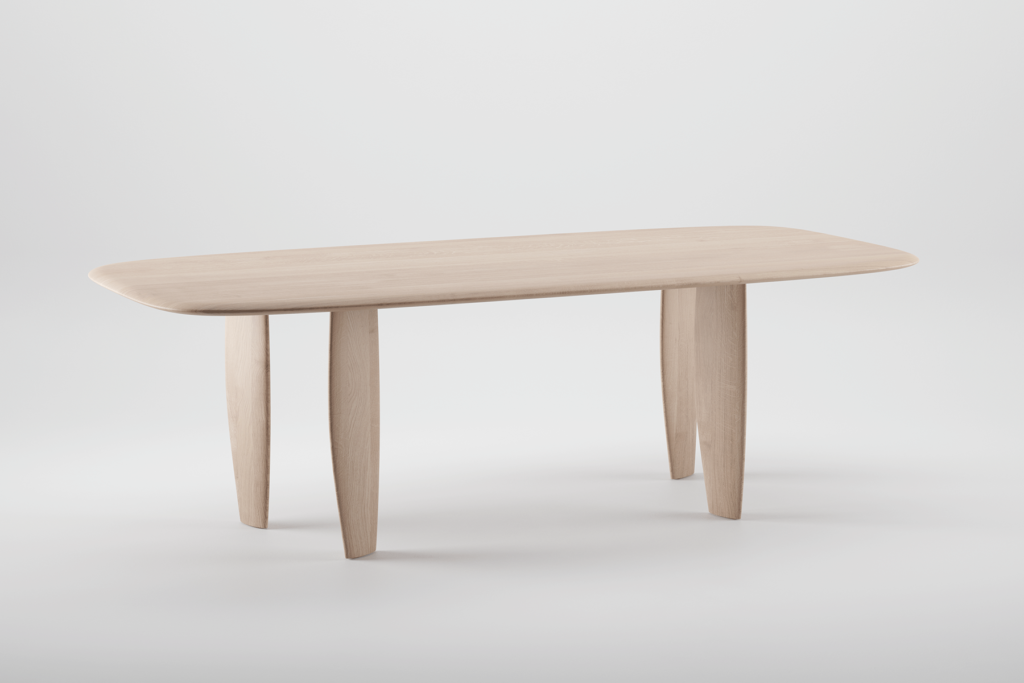 Prepoznatljivost stola Nilu čine noge neobičnih proporcija. One su u nekim pogledima masivne, dok su u drugim tanke, s naglašenim detaljem suženja prema podu. Time se stvara karakteristična silueta koja se mijenja ovisno o kutu gledanja. Stol je izrađen od masivnog drva, kombinacijom modernih CNC tehnologija i fine završne ručne obrade, tako da meki vizualni izgled prate i taktilno meke plohe.
