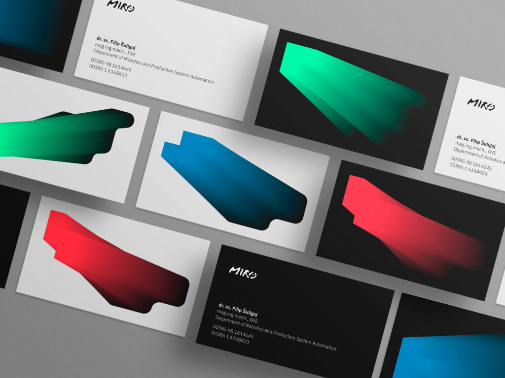 Na dizajnu vizualnog identiteta Studija mehatronike i robotike sudjelovao je i robot Miro, humanoidni robot na kojemu su studenti do tada učili. Roboti su tipičan proizvod mehatronike, međutim, Miro je na neki način i kolega pa su ga odlučili uključiti u proces stvaranja vizualnog identiteta studijskog smjera. Miro, čije je ime izvedeno iz skraćenice naziva studijskog programa MiR (mehatronika i robotika) je strojnim učenjem, odnosno analizom slika slova, naučio raspoznati ona koja ispisuju njegovo ime. Rezultati njegovoga učenja korišteni su kao baza u gradnji vizualnog identiteta koji se sastoji od logotipa i pripadajućih grafika.