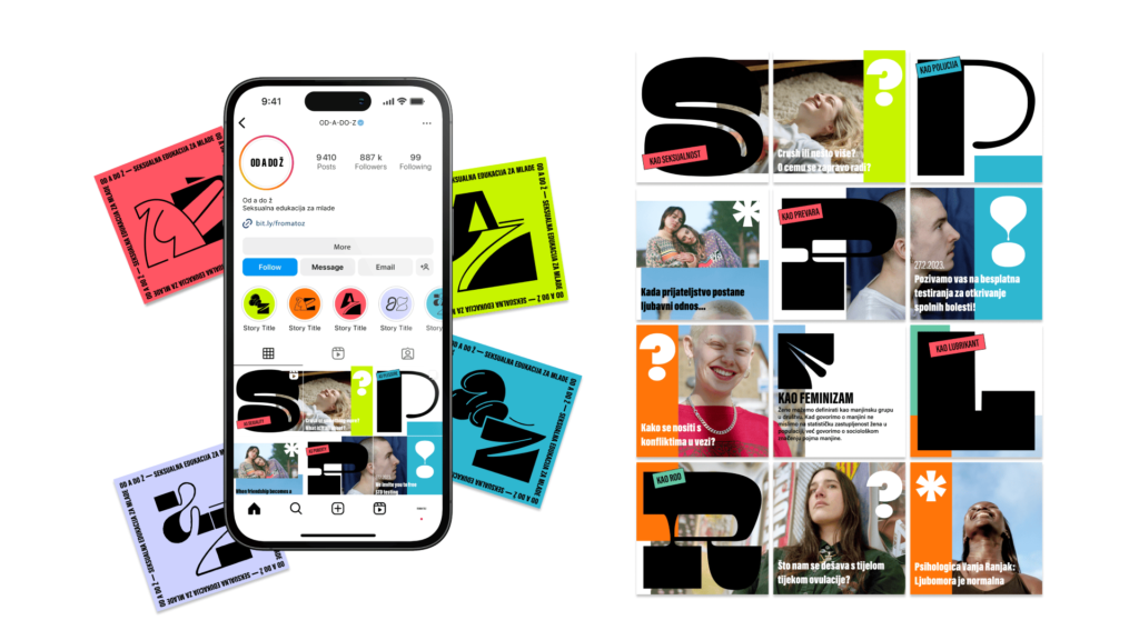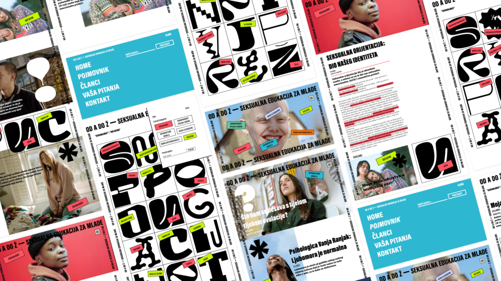 Projekt (Seksualnost) Od A do Ž, redizajn platforme SeZaM, pruža mladima pouzdane informacije o seksualnom zdravlju, spolu, rodu, seksualnim pravima i srodnim temama. Nudi siguran, otvoren prostor mladima za postavljanje pitanja i prevladavanje neznanja, strahova i tabua. Rješenje je vizualno snažno, s jakim bojama i jedinstvenom tipografijom. Uključuje web stranicu, Instagram profil i promotivne materijale.