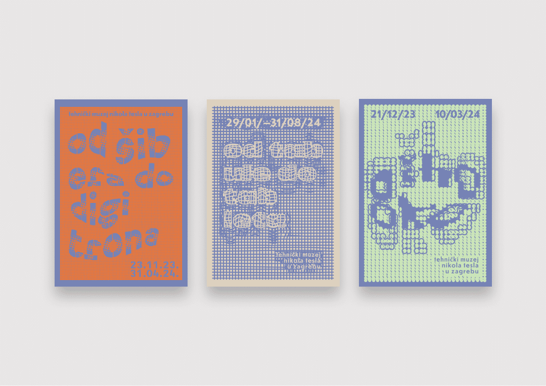 Plakati za Tehnički muzej Nikole Tesle u Zagrebu temelje se na eksperimentiranju rasterima. Ovi rasteri su nastali korištenjem motiva iz same izložbe, čime su naglašeni ključni elementi i tematika koju izložba obrađuje. Proces oduzimanja i dodavanja elemenata rezultirao je dinamičnim i vizualno privlačnim efektima. Naslovi izložbi su pažljivo prilagođeni rasterima kako bi stvorili harmoničnu i koherentnu cjelinu.