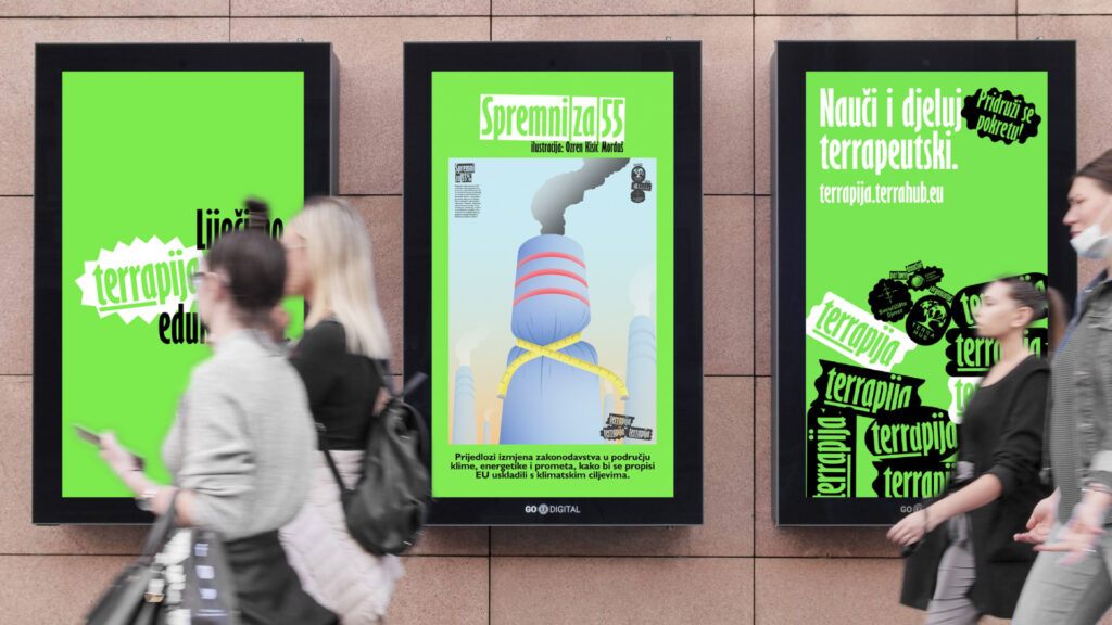 Klimatska kriza sve je dominantniji kontekst koji izaziva nelagodu, posebno kod mladih. Kako bi im se omogućilo da izraze svoju viziju problema i rješenja, uz podršku agencije 404 pokrenuta je Terrapija – suradnička platforma udruge Terra Hub i Sveučilišta Sjever. Terrapija pruža prostor studentima za kritičko promišljanje i suradnju sa studentima drugih fakulteta. U Terrapiji 1.0 studenti dizajna kreirali su plakate na temu Klimatskog rječnika, koji su obišli Hrvatsku i ostvarili 11 milijuna impresija. Terrapija 2.0 postavila je studentima izazov smišljanja spekulativnih kampanja za blisku budućnost uz mentorstvo dizajnerskog studija Kazinoti & Komenda. Terrapija 3.0 je u pripremi.