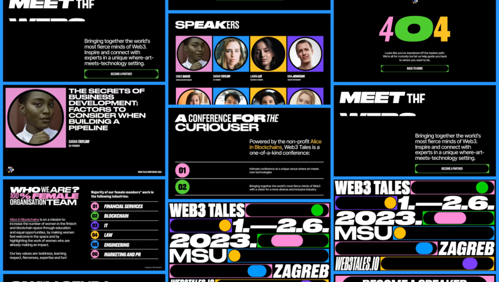 Vizualni identitet za Web3 Tales, konferenciju koja okuplja sjajne pojedince iz svijeta Web3 tehnologije. S obzirom na to da Web3 tehnnologija predstavlja nešto kompleksno, nepoznato, uzbudljivo i zanimljivo, cilj je bio stvoriti identitet koji odražava takav karakter. Dinamičnost je komunicirana kroz animacije koje su integrirane u srž identiteta, a forma je inspirirana dizajnerskim elementima korisničkih sučelja. Paleta boja donijela je pristupačnost, prepoznatljivost i atraktivnost. Inspirirani UI elementima i interaktivnošću Web3 tehnologije, dizajneri su razvili izgled koji je futurističan, ali inkluzivan.
